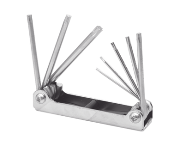 Juego de 8 llaves hexagonales Torx® tipo navaja, estuche metálico.