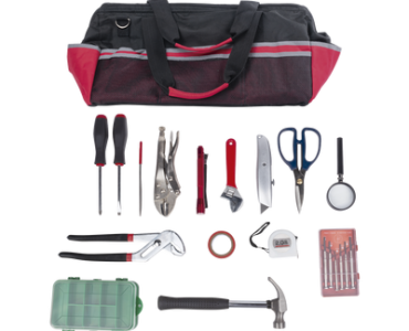 Kit de herramientas de reparación con 15 piezas, incluye maleta de herramientas.