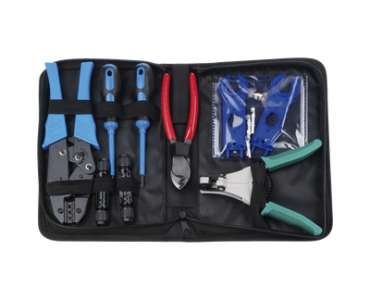 Juego de Herramientas y Accesorios, para Instalación de Sistema Solar. Incluye: Pinzas (3), Desarmadores (2), Llaves (2) y Accesorios (7).