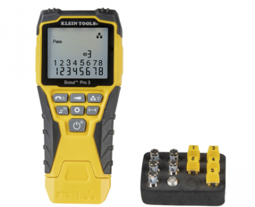 Kit Probador de Cables de Voz (RJ11/12), de Datos (RJ45) y de Video (Coaxial con conector F), con Probador Scout™ Pro 3, transmisores remotos, adaptador y batería.