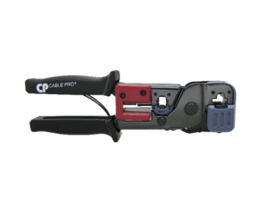 Ponchadora/Pelacables/Cortacables con Matraca para Conectores Pass-Thru RJ45 y Conectores Estándar RJ11/RJ12.