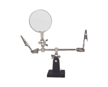Soporte con lupa y dos brazos con clip. Ideal para trabajos de soldadura.