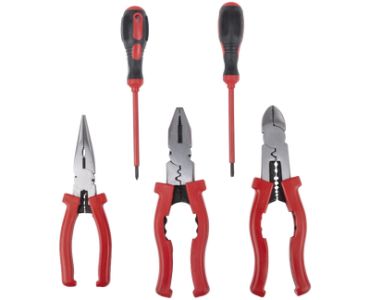 Kit de 3 Pinzas Aisladas + 2 Desarmadores Aislados de Electricista. Ideal para trabajos en Tableros Eléctricos.