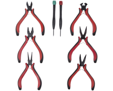 Juego de Herramientas con 6 Pinzas Eléctricas de 4.5″ + 2 Desarmadores de Precisión (Plano y Cruz).