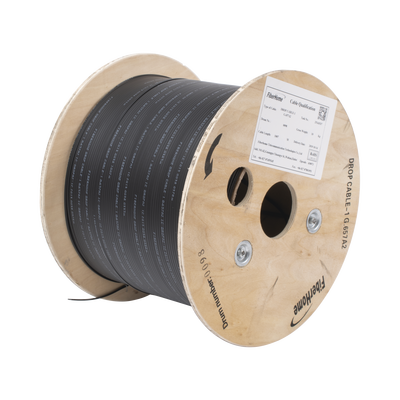 Carrete de 1 km de Fibra Óptica Drop, Interior/Exterior G.657A2 Monomodo de 1 hilo, Dieléctrica, Forro Negro