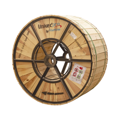 Carrete de 4 km de Fibra Óptica Aérea (ADSS) G.652D Armada Anti roedor, Dieléctrica, Monomodo 12 hilos, Span 200