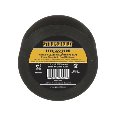 Cinta Eléctrica Para Aislar, de PVC, Trabajo Pesado, Grosor de 0.21 mm (8.5 mil), Ancho de 50 mm, y 20 m de Largo, Uso Interior/Exterior, Color Negro