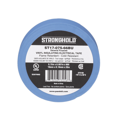 / Cinta Eléctrica para Aislar, de PVC, Uso General, Grosor de 0.18mm (7 mil), Ancho de 19mm, y 20.12m de Largo, Color Azul
