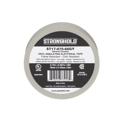 Cinta Eléctrica para Aislar, de PVC, Uso General, Grosor de 0.18mm (7 mil), Ancho de 19mm, y 20.12m de Largo, Color Gris