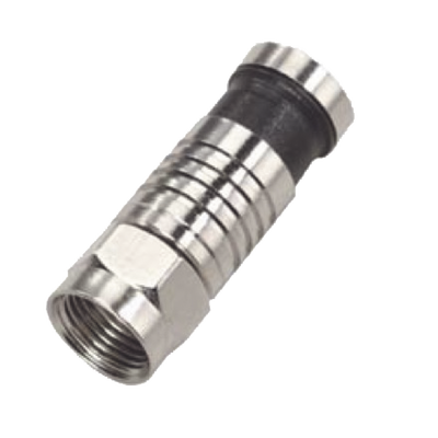 Conector F Macho de Compresión para cable RG-59, Cuerpo de Bronce Niquelado.