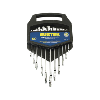 / Juego de llaves combinadas en rack con 11 piezas metricas, de cromo con acabado satinado.