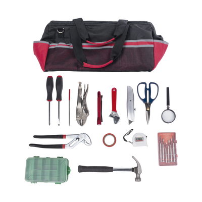 Kit de herramientas de reparación con 15 piezas, incluye maleta de herramientas.