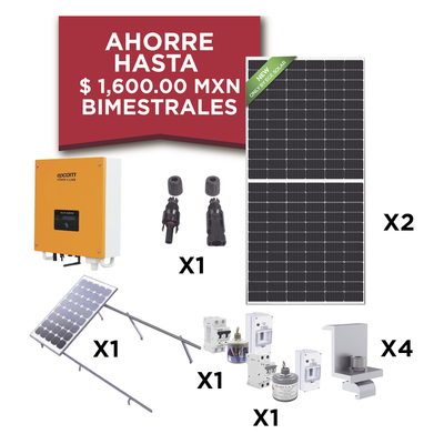 / Kit Solar para Interconexión de 1 KW de Potencia, 220 Vca con Inversor de Cadena y Paneles Monocristalinos de 450 W
