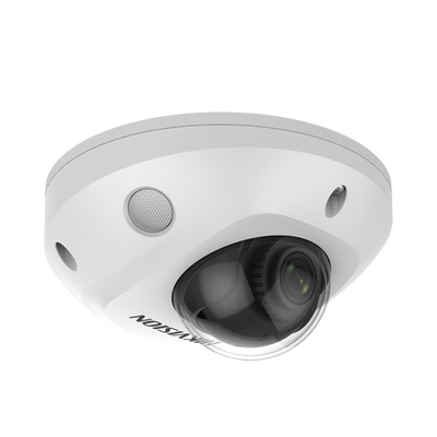 / Mini Domo IP 2 Megapixel / Lente 2.8 mm / 15 mts IR EXIR / Micrófono Integrado /Exterior IP66 / IK08 / PoE / Audio y Alarmas / H.265+ / Videoanaliticos Integrados