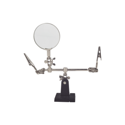 Soporte con lupa y dos brazos con clip. Ideal para trabajos de soldadura.