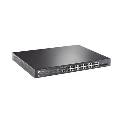 Switch PoE+ JetStream SDN Administrable 28 puertos 10/100/1000 Mbps + 4 puertos SFP, 24 puertos PoE, 384W, administración centralizada OMADA SDN
